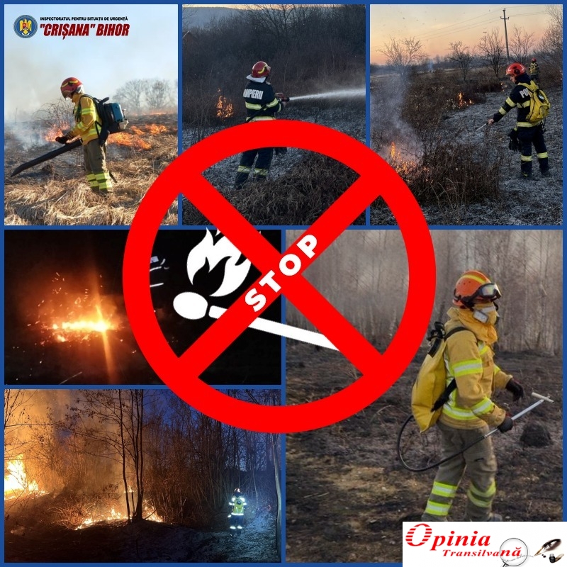 În cursul după-amiezii și serii de joi, 06 martie a.c., pe teritoriul județului Bihor s-au produs 10 incendii de vegetație uscată care s-au manifestat la terenuri, pășuni comunale și păduri, pe o suprafață totală de aproape 50 de hectare, evenimente survenite în localitățile Bulz, Vadu Crișului, Valea Crișului, Bratca, Țețchea, Fâșca, Săldăbagiu de Munte, Tomnatic și Sărand.