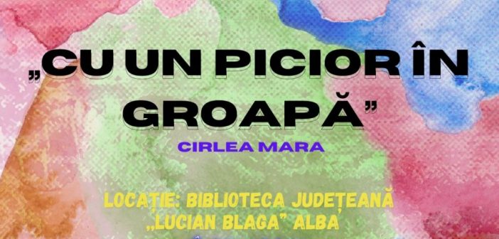 Vineri, 24 noiembrie 2023, la Biblioteca Județeană „Lucian Blaga” Alba ( Alba Iulia, Str. Trandafirilor, nr. 22), va fi vernisată la ora 17:00, expoziţia de artă plastică a elevei Mara Cirlea, intitulată „Cu un picior în groapă”. Expoziția va fi prezentată de autoarea tablourilor iar evenimentul le va avea ca amfitrioane pe bibliotecarele Liudmila Cioflică și Luiza Pop.