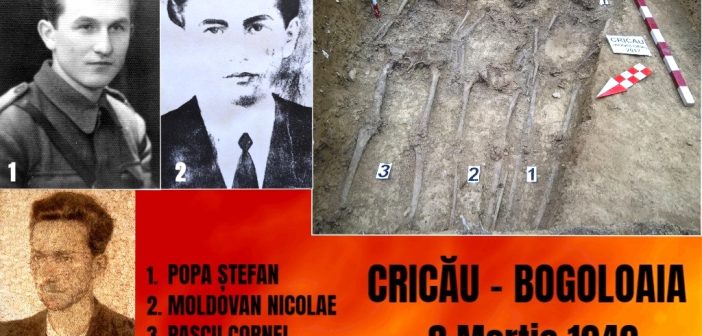 Osemintele celor trei victime descoperite la Cricău (Bogoloaia) împreună cele ale altor șapte partizani anticomuniști ce au fost descoperite și recuperate în cursul unor acțiuni anterioare pe care le-am desfășurat tot în județul Alba, la Bistra (2015) și Mesentea (2016), după expertizare și identificare, din iniţiativa Institutului și cu contribuția majoră a Primăriei Alba Iulia au fost reînhumate la 22 august 2018 în sicrie individuale, cu ceremonial religios și militar, într-un mormânt comun amenajat lângă Monumentul Rezistenței Anticomuniste din oraș.