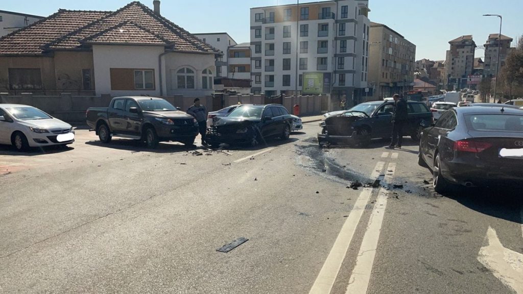 Un accident în lanț s-a produs luni, pe strada Tudor Vladimirescu din municipiul Alba Iulia, în zona Casei Județene de Pensii Alba.