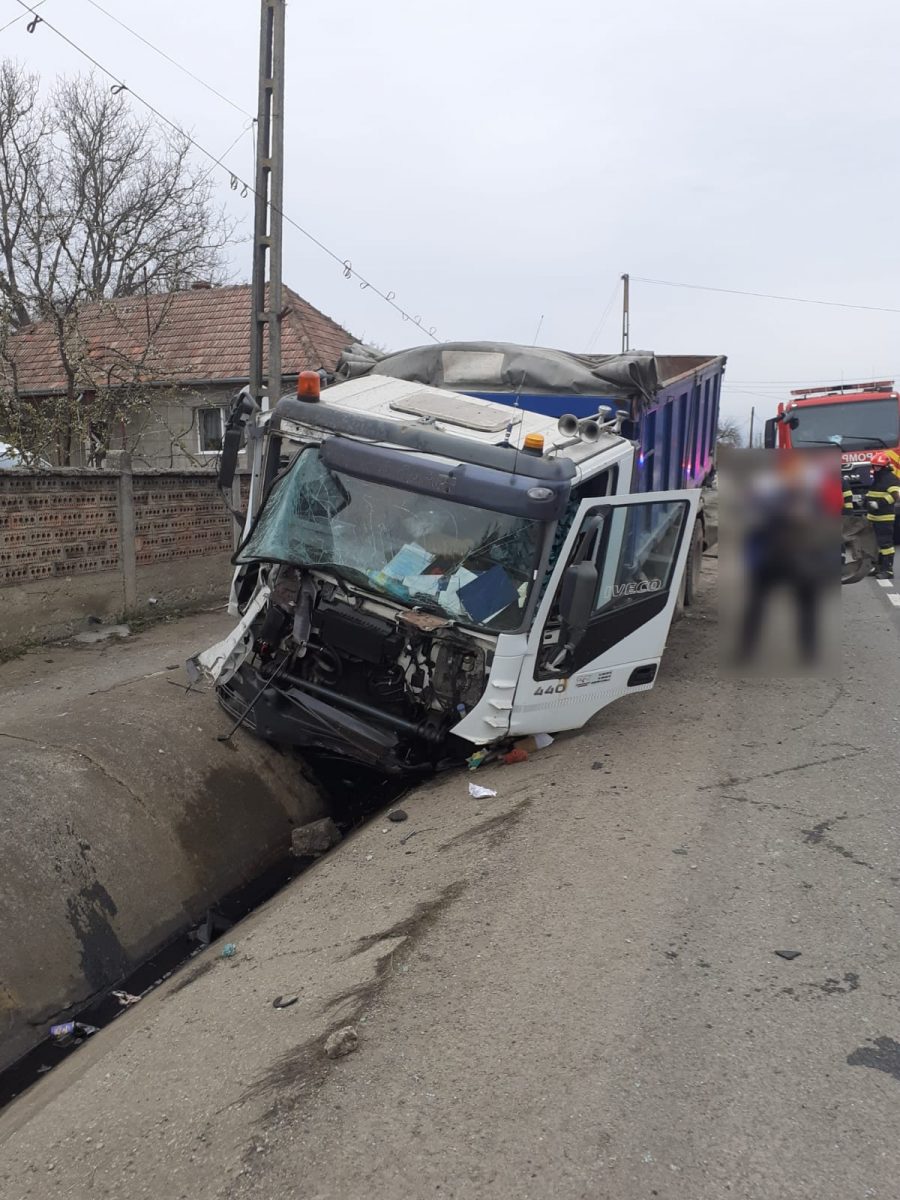 Echipajul din cadrul Punctului de Lucru Gherla a găsit la fața locului o basculantă avariată, însă din fericire nu au existat victime încarcerate. Un bărbat de aproximativ 55 de ani, conștient și cooperant, a fost preluat de echipajul SAJ, în vederea acordării îngrijirilor medicale.