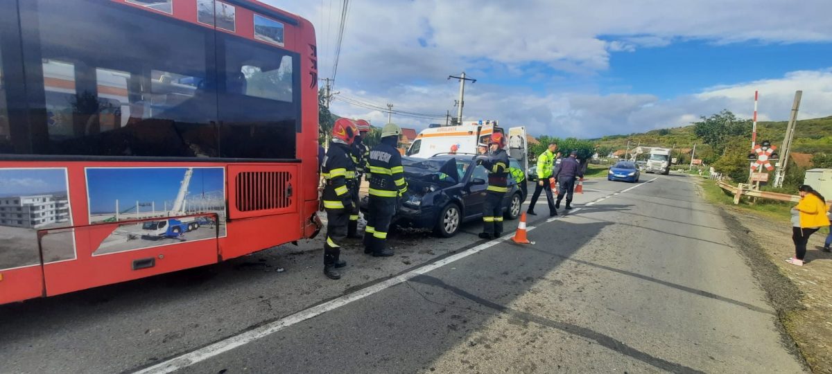 În urma accidentului, o femeie de 45 de ani, pasageră în autobuz a suferit leziuni corporale ușoare și a fost transportată la spital.