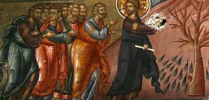 Sfantul Evanghelist Marcu vorbind despre smochinul neroditor spune: „Iar a doua zi iesind ei din Betania, Domnul a flamanzit. Si vazand un smochin de departe, avand frunze, a mers sa vada daca va gasi ceva in el. Venind la el, n-a gasit nimic decat frunze, ca nu era inca vremea smochinelor. Si a zis Iisus smochinului: Nimeni sa nu mai manance rod din tine in veac” (Marcu 11, 12-14), iar Sfantul Evanghelist Matei ne spune ca: „Indata s-a uscat smochinul” (Matei 21, 19).