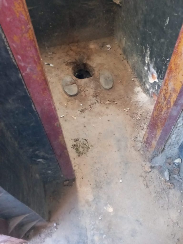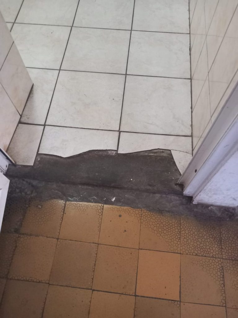 -pardoseală și scări uzate, grup sanitar cu defecțiuni la blocul automat de apă și hârtie, cu