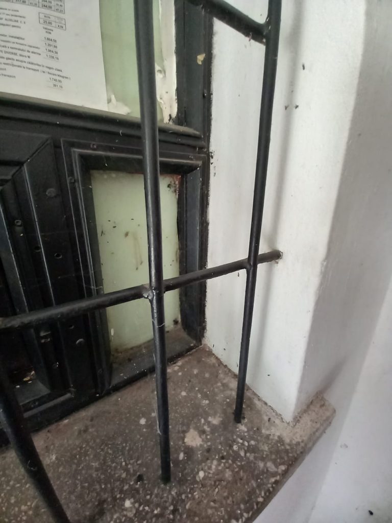 -geamuri murdare în strat grosier, tavan cu infiltrații în sala de așteptare);