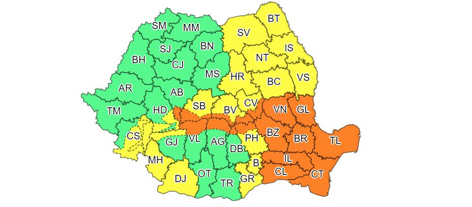 Conform prognozei de specialitate, în perioada 18 noiembrie, ora 14:00 – 19 noiembrie, ora 10:00, va intra în vigoare un prim Cod portocaliu de intensificări susţinute ale vântului, viscol şi vizibilitate redusă sub 50 de metri, local în Carpaţii Meridionali şi în Carpaţii de Curbură. În intervalul menţionat, local, vor fi intensificări susţinute ale vântului cu rafale de 80 – 110 km/h.