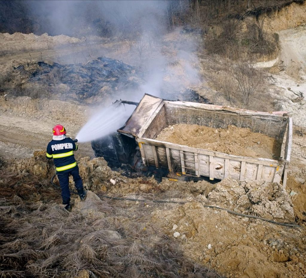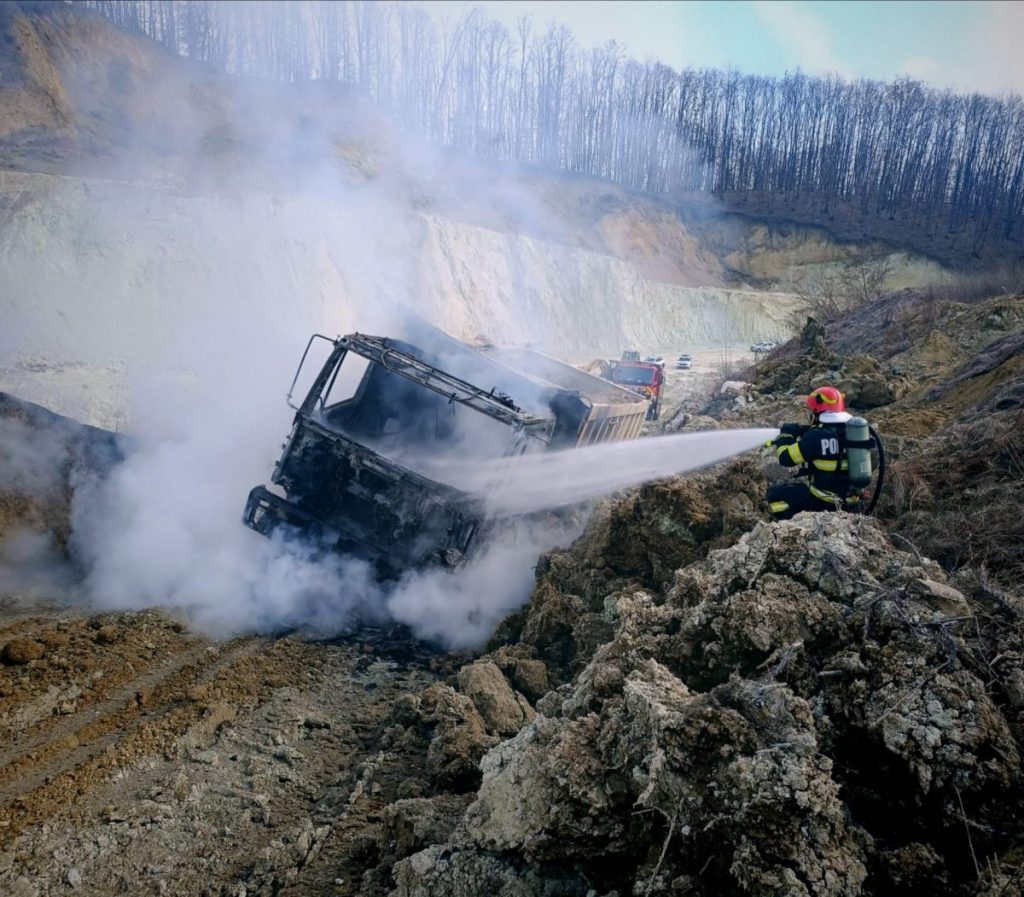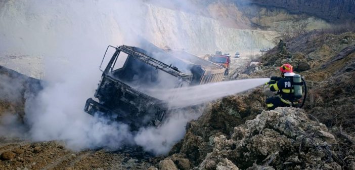 Pompierii Secției Ilia au intervenit, astăzi, pentru lichidarea unui incendiu izbucnit la o autobasculantă aflată în incinta carierei de piatră din Gurasada.