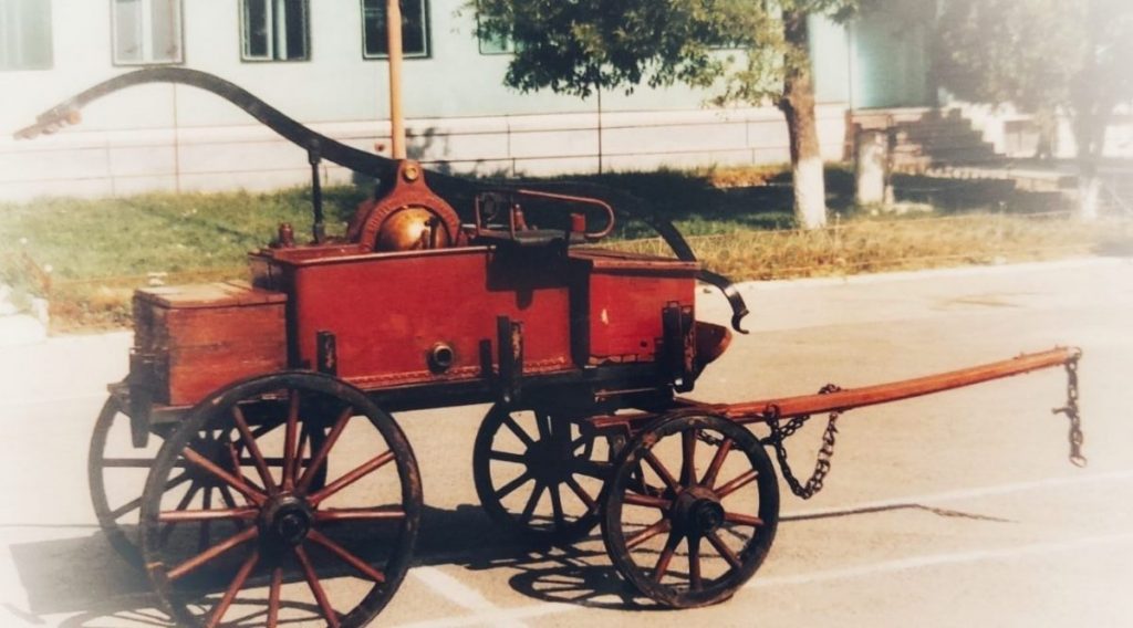 „Carele de stingere” – denumirea din epocă, erau trase cai, iar cu ajutorul acestora pompierii, puteau interveni la stingerea incendiilor.