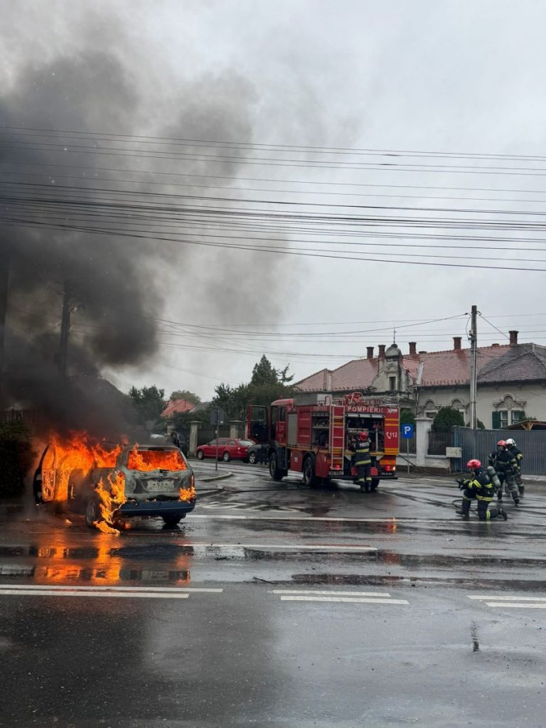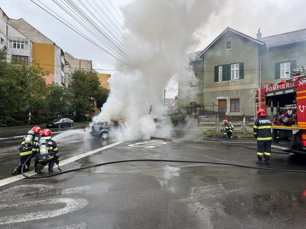 Pompierii sibieni au intervenit joi după-amiază, în municipiul Sibiu, la intersecția străzilor Rusciorului, Cameliei și Bagdazar, pentru stingerea unui incendiu izbucnit la un autoturism.