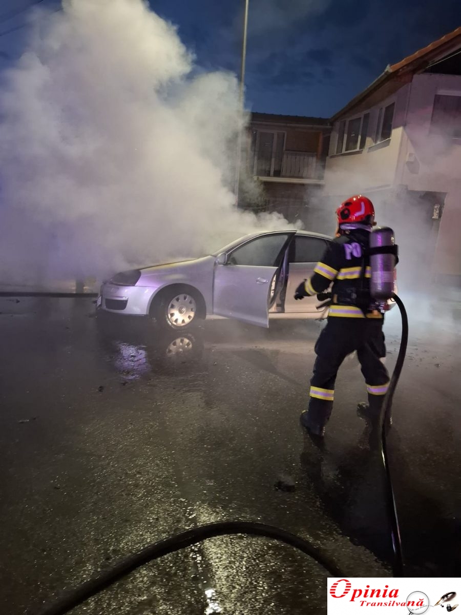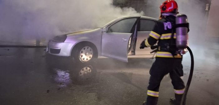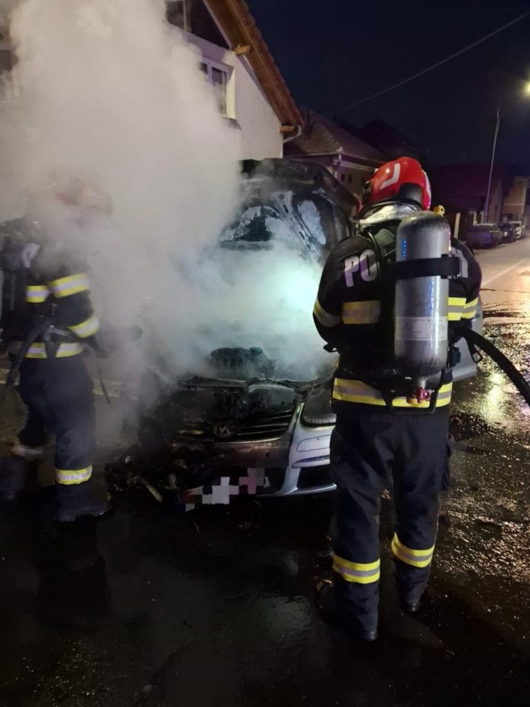 Detașamentul de pompieri Sebeș intervine pentru stingerea unui incendiu izbucnit la un autoturism în municipiul Sebeș.