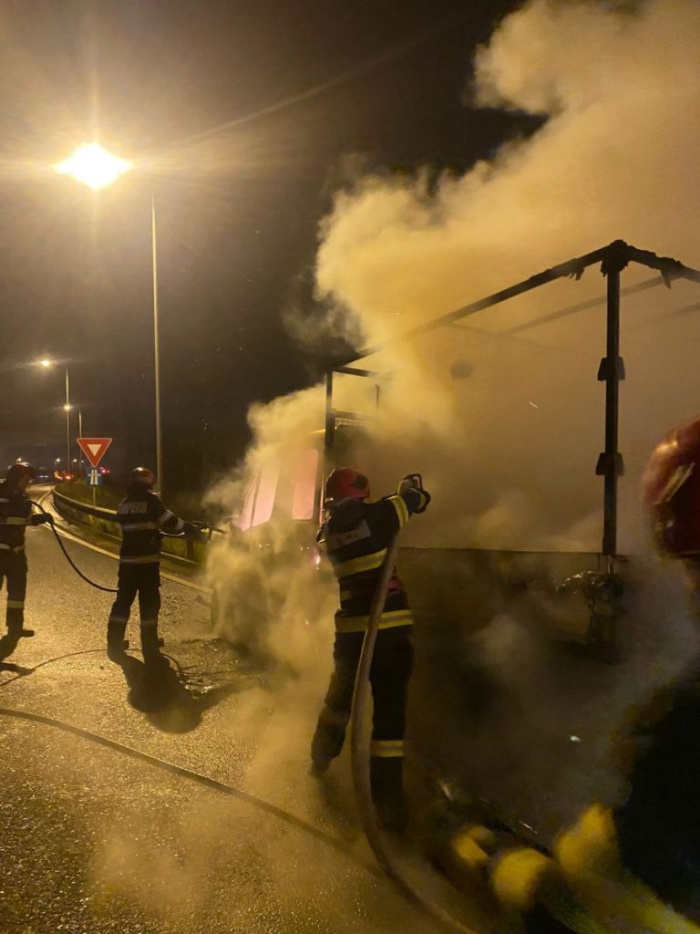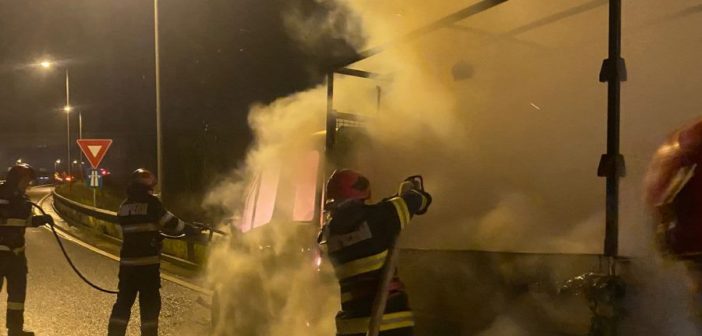 O autoutilitară a luat foc vineri seară, pe Autostrada A1 în zona Vințișoara.