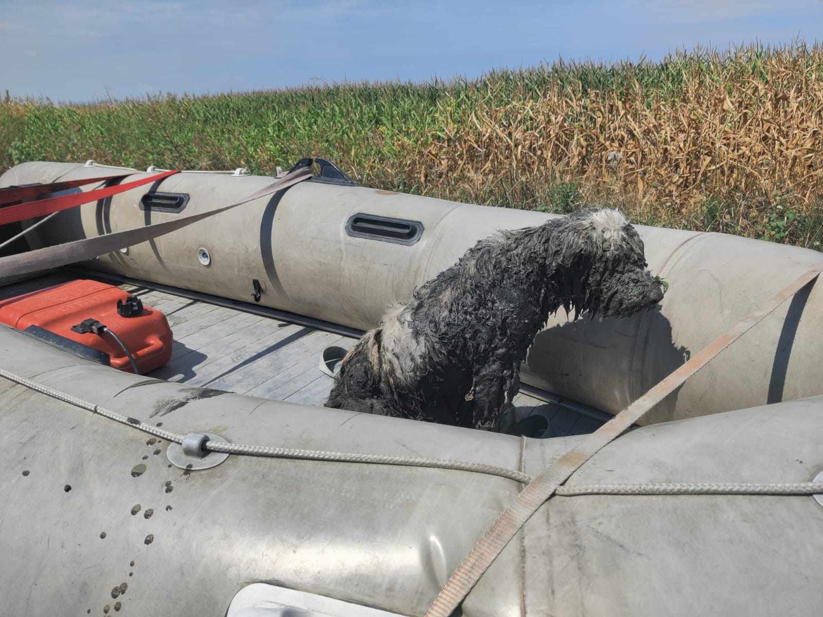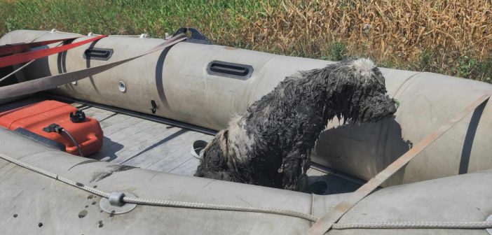 Un câine care a rămas blocat în nămol, în albia râului Mureș, a fost salvat marți, de către pompierii din Aiud.