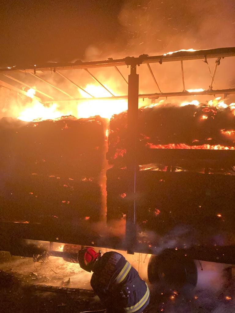 În urma incendiului, a ars una dintre remorcile autocamionului și 4 paleţi din totalul de 10 pe care îi transporta.