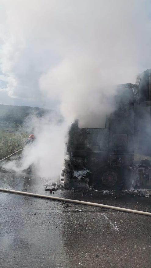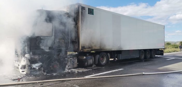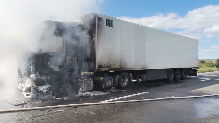 Un camion a fost cuprins de flăcări, vineri, pe DN 1, între municipiul Aiud și orașul Teiuș.
