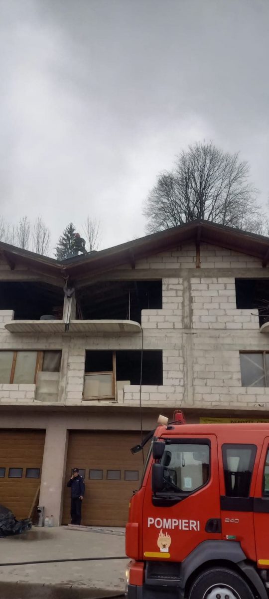O casă aflată în construcție, a fost cuprinsă de flăcări, luni seara, în orașul Câmpeni.