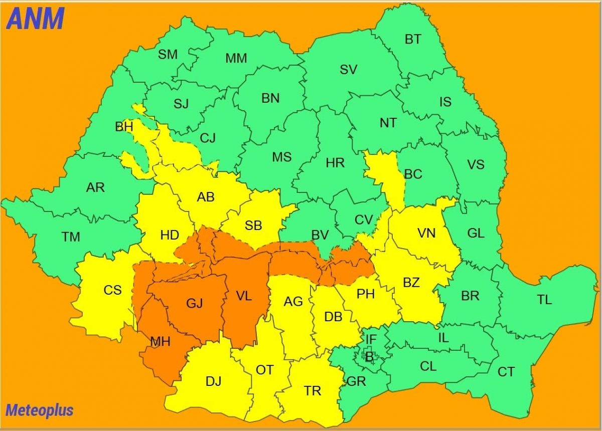 Administrația Națională de Meteorologie a emis un cod portocaliu de ploi abundente, valabil începând de joi, 28 martie, ora 10:00, până vineri, 29 martie, ora 12:00. Fenomenele extreme vor afecta mai multe județe din sudul și centrul țării, cu ploi torențiale și acumulări semnificative de apă.