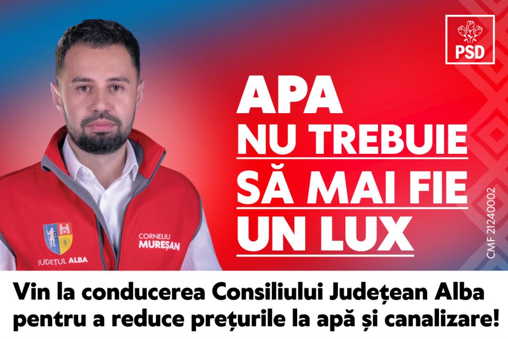 Peste 15.000 de locuitori ai județului au semnat deja petiția PSD pentru reducerea prețurilor la apă și canalizare. Pe baza acesteia, am înaintat un plan de reducere a prețurilor și de eficientizare a activității companiei APĂ CTTA. PNL și actuala conducere liberală a CJ nu doresc să facă acest lucru pentru a nu afecta salariile de lux și beneficiile membrilor de partid aflați în posturi călduțe în compania de apă. Candidez la președinția Consiliului Județean Alba deoarece am o responsabilitate morală față de acești oameni și pentru a duce la bun sfârșit solicitările lor. Duc în Consiliul Județean Alba voința a 15.000 de oameni, care au semnat petiția, dar și a celorlalți locuitori ai județului Alba.