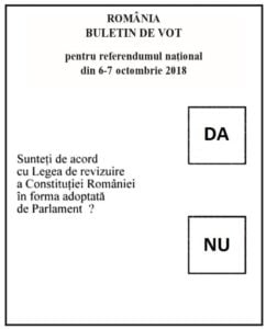 Fiecare participant la referendumul familiei din acest weekend își va exprima dorința într-o cabină închisă, aplicând șampila ”VOTAT” doar în cele două căsuțe inserate pe buletinul de vot, ”DA” sau ”NU”.