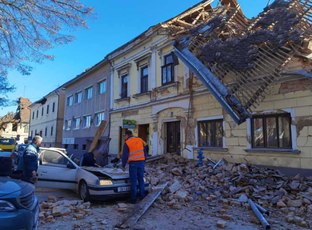 Postul de televiziune N1 a anunţat că epicentrul s-a aflat în oraşul Petrinja, aflat la 50 de kilometri distanţă de capitala Zagreb şi a prezentat imagini cu echipe de intervenţie care salvau un bărbat şi un copil de sub dărâmături.
