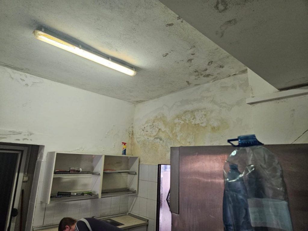 În timpul inspecției, inspectorii au observat că pereții și tavanul erau acoperiți de mucegai, iar produsele alimentare erau depozitate în contact direct cu pavimentul. De asemenea, existau probleme grave de igrasie și infiltrații de apă prin pereți, iar blocul alimentar nu era igienizat corespunzător.