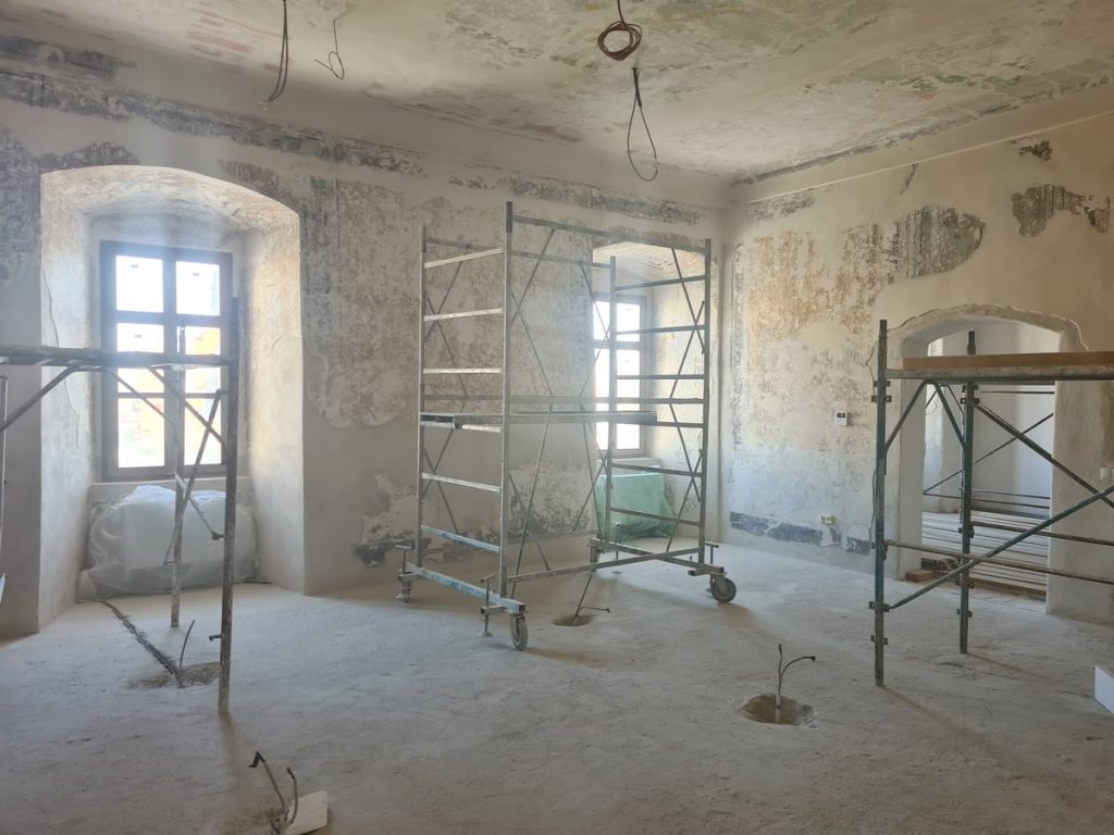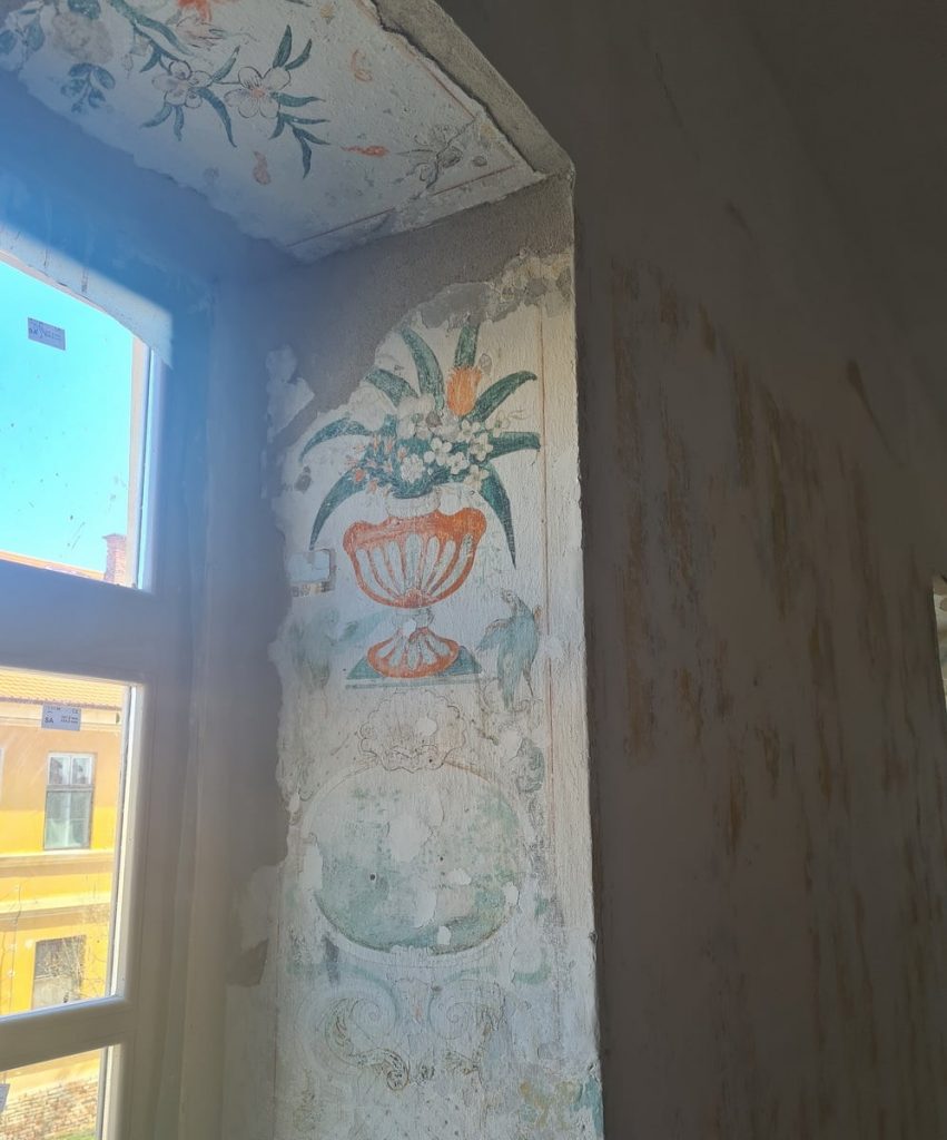 Au fost descoperite și restaurate secvențe din decorațiile încântătoare ale pereților interiori, cu scene picturale. Flori și elemente vegetale, păsări și scene de vânătoare sau peisaje viu colorate, au animat acum 4-5 veacuri palatul. Toate acestea au fost găsite sub straturile de tencuială din diverse perioade ale existenței palatului.