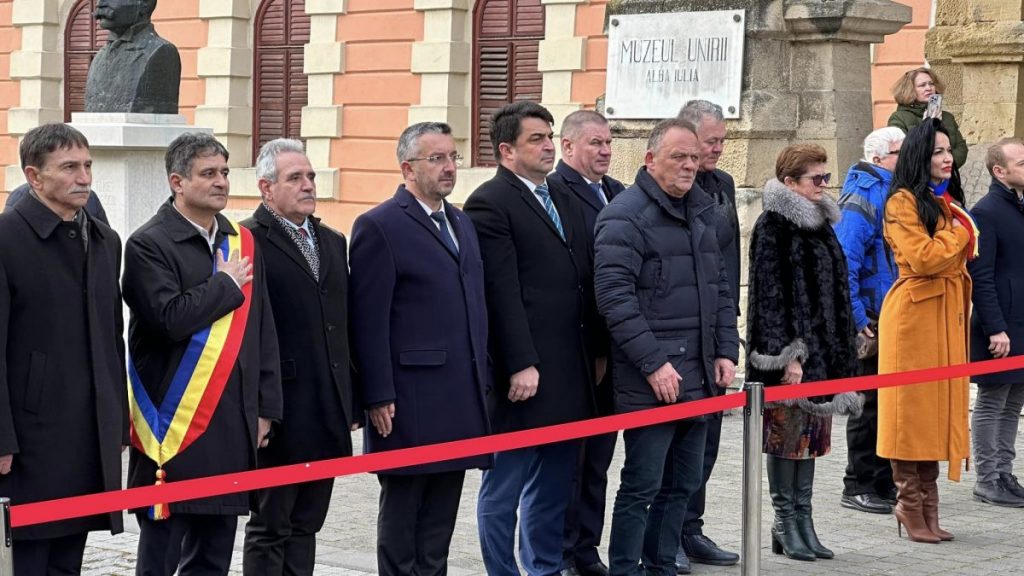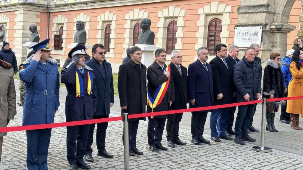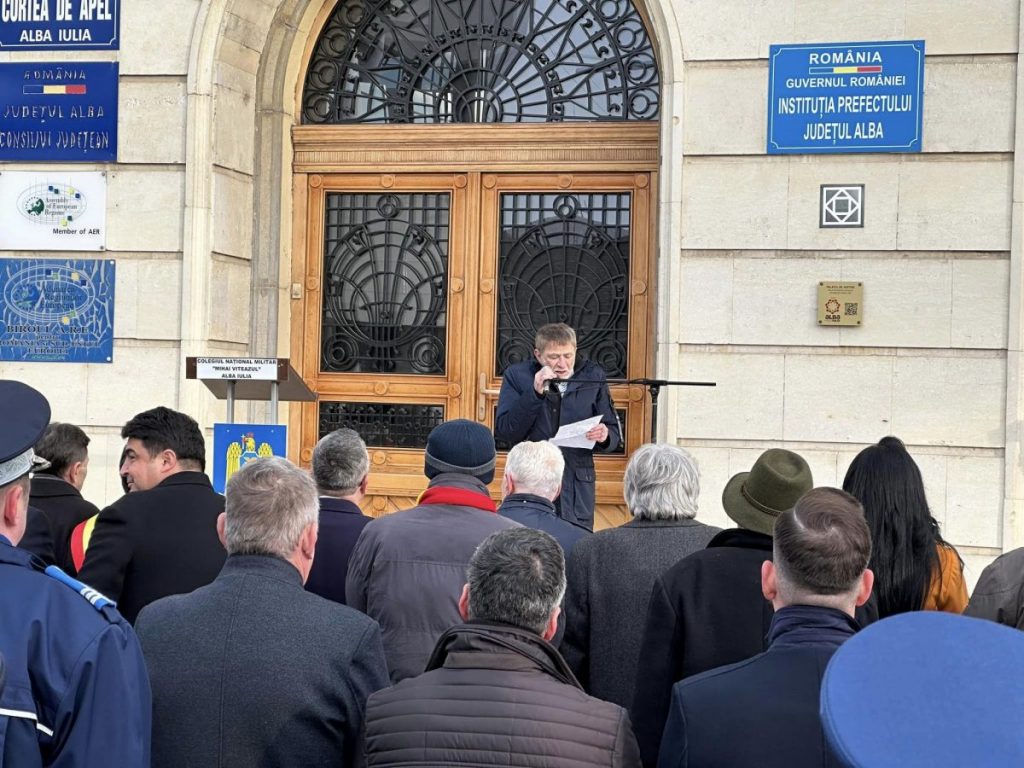 Evenimentul a debuta la ora 11.00, la Troița din Piața I.C.Brătianu, din municipiul Alba Iulia, cu acordarea a avut loc acordarea onorului, salutul Drapelului și intonarea Imnului Național al României.