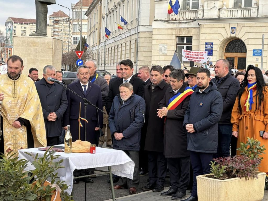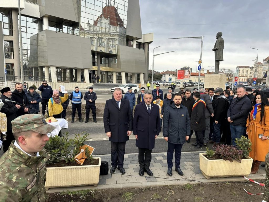 Apoi, un sobor de preoți, a oficiat un ceremonial religios, fiind oficiată o slujbă de pomenire, pentru cei care s – au jerfit în acele zile pentru Libertate.