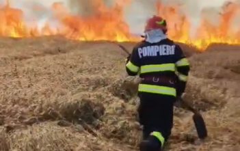 Incendiu de vegetație uscată în Hațeg: 10 hectare de grâu, mistuite de flăcări