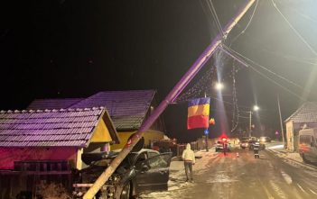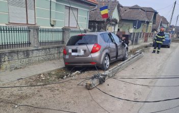 Accident în Aiudul de Sus: mașină proiectată într-un stâlp de curent, pompierii intervin pentru siguranță și acordarea primului ajutor