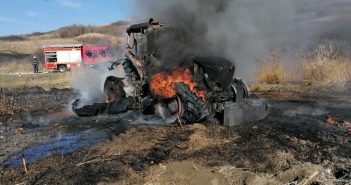 Un tractor folosit în activităţi agricole a fost distrus astăzi, după ce a fost cuprins de flăcări pe un câmp din municipiul Blaj.