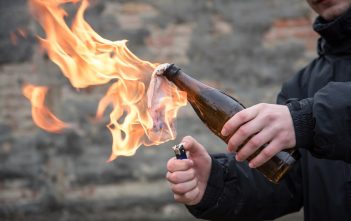 Patru sticle cu cocktail Molotov, descoperite într-un tomberon lângă Catedrala Încoronării din Alba Iulia