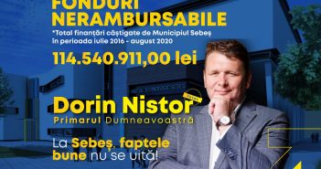 PRIMARUL LIBERAL DORIN NISTOR A DEMONSTRAT CĂ LA SEBEȘ S-A PUTUT ÎNTR-UN SINGUR MANDAT CEEA CE NU S-A FĂCUT ÎN 4 MANDATE: FONDURI NERAMBURSABILE CÂȘTIGATE PENTRU SEBEȘ ÎN VALOARE DE 114 MILIOANE LEI!