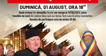 Un concert caritabil de pricesne și cântece patriotice, susținut de părintele Doru Gheaja, Cenaclul Lumină Lină și interpreta Oana Bozga-Pintea, va avea loc duminică, 1 august, ora 18.00.