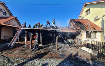 O casă a fost cuprinsă de flăcări, joi dimineața, pe strada Mureșului, din municipiul Alba Iulia.