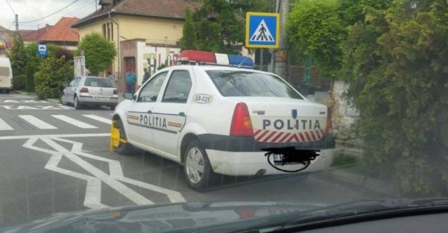După ce au parcat maşina de serviciu într-un loc nepermis, mai exact în apropierea unei treceri de pietoni din Blaj, oamenii legii s-au trezit cu roata autoturismului blocată.