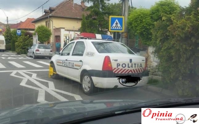 Reprezentanţii IPJ Alba spun  că este vorba despre maşina unui post de poliţie din judeţ şi au precizat că poliţiştii nu au găsit loc de parcare în faţa sediului Poliţiei şi şi-au lăsat maşina de serviciu acolo preţ de câteva minute, pentru a duce persoane la audieri.