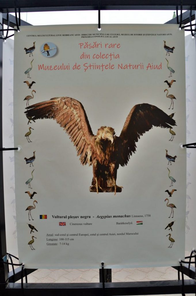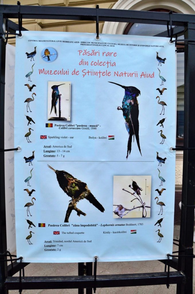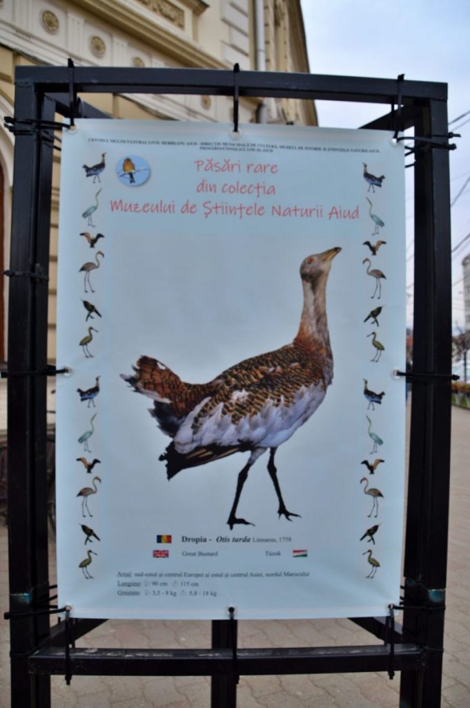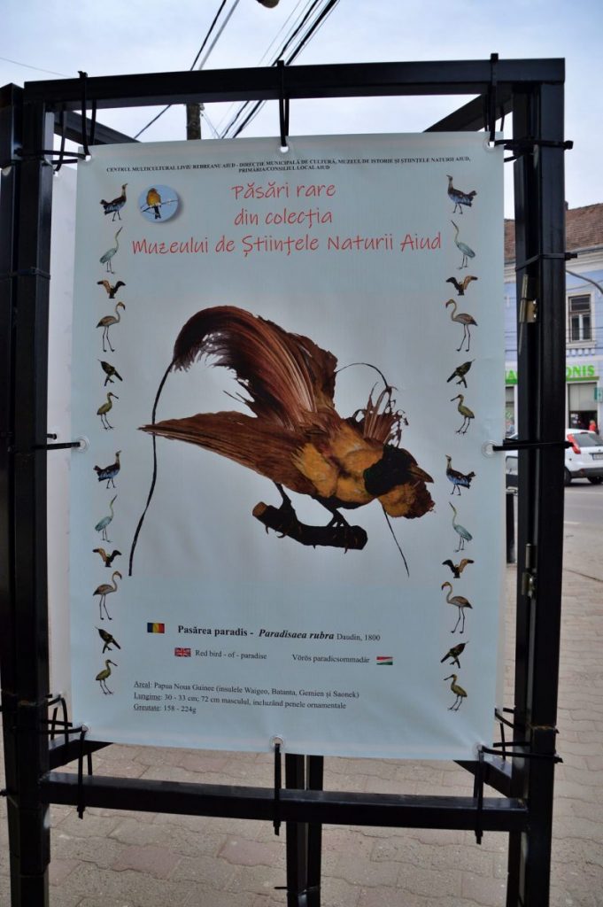 Expoziția stradală ” Păsări rare din colecția Muzeului de Științele Naturii Aiud” poate fi vizionată, de vineri, în spațiul expozițional din fața Primăriei Municipiului Aiud.