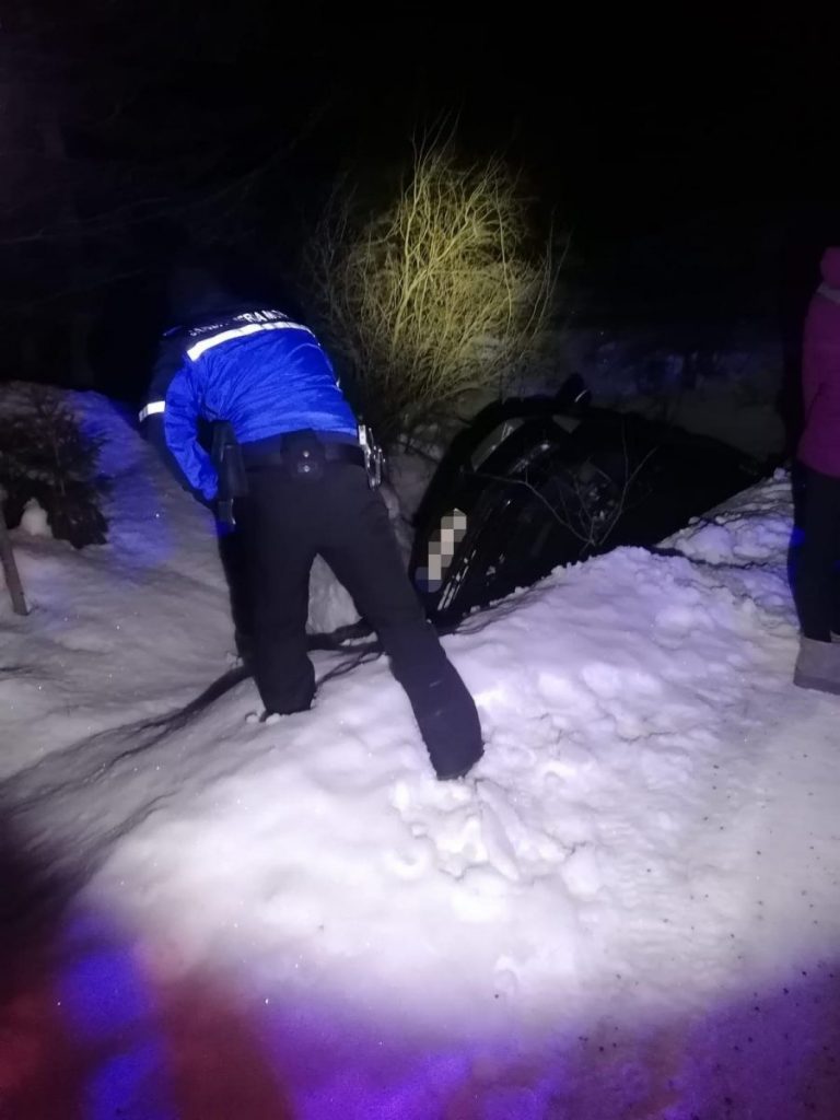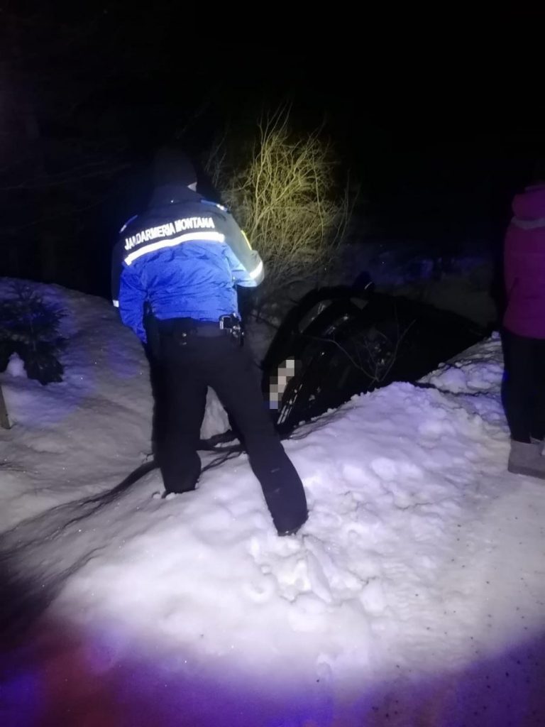 Deplasându-se la fața locului, colegii noștri au identificat un bărbat și o femeie, care nu au necesitat îngrijiri medicale în urma accidentului. Autoturismul cu care se deplasau era blocat în șanț, într-un cap de pod, familia fiind în imposibilitatea de a continua călătoria. Persoanele în cauză, care erau din județul Bistrița-Năsăud, au fost conduse cu autospeciala Jandarmeriei la pensiunea unde aveau rezervare, urmând ca autovehiculul să fie deblocat in următoarea zi.