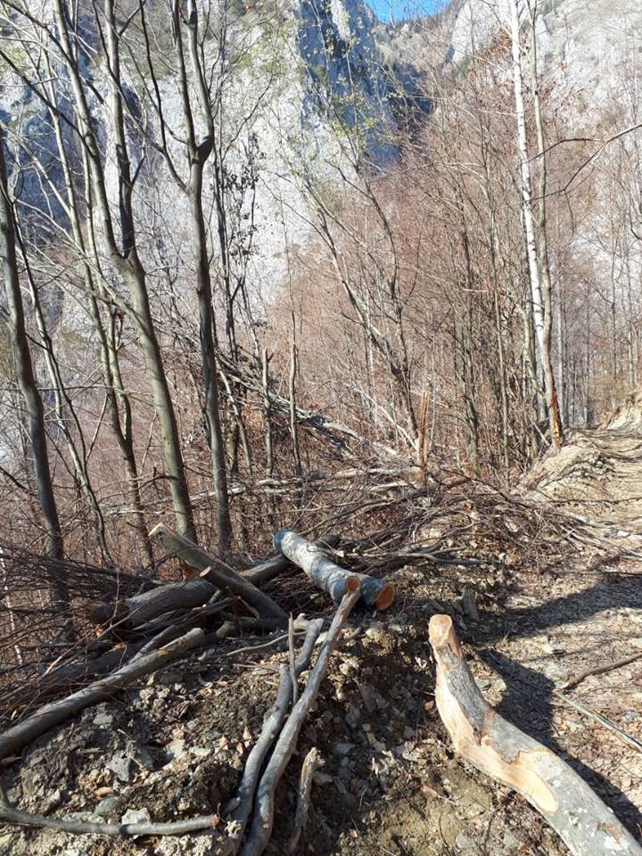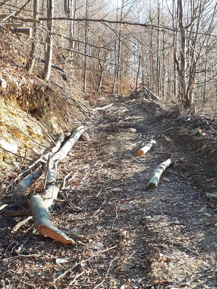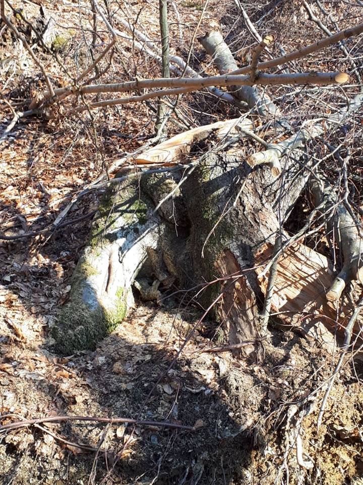 Imaginea dezolantă te lovește de cum dai de primele indicatoare de Rezervație Naturală. Zeci de copaci trântiți la pământ de drujbele ce finanțează nemernicia acestor indivizi care închid ochii realității.