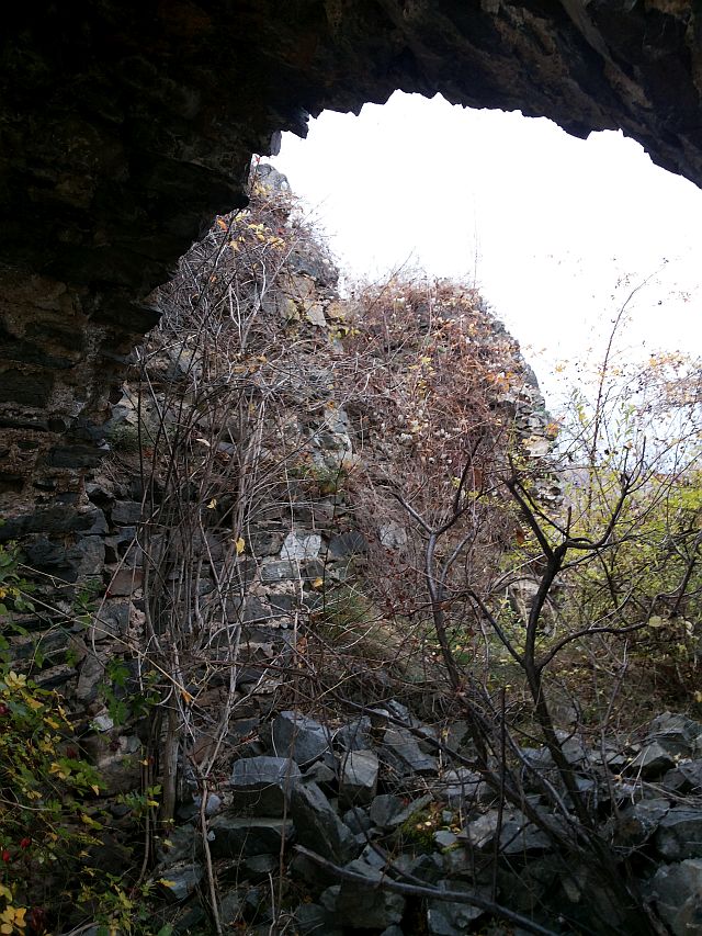 Aici găseşti turnul de nord cu un portal în arc frânt, ziduri de incintă greu vizibile din cauza vegetației abundente și zidul de apărare estic.