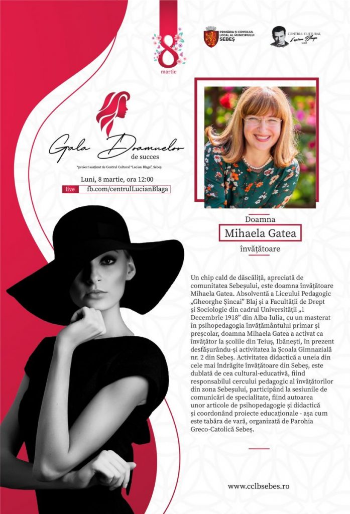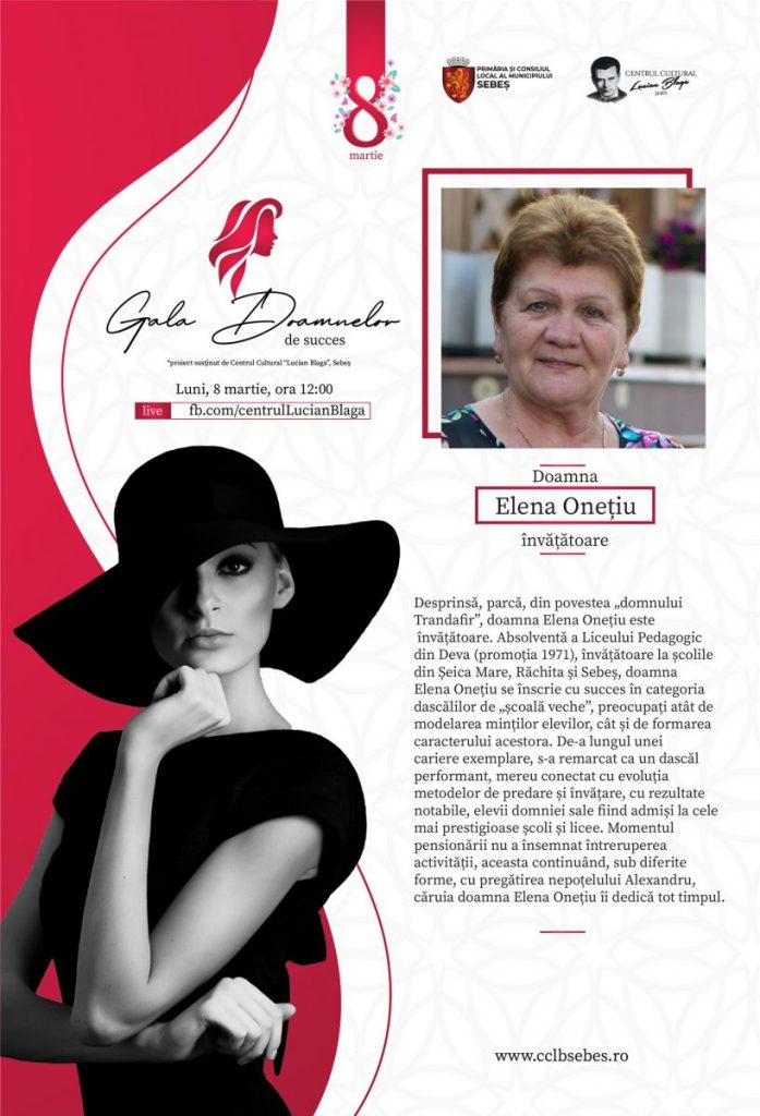 „Cu prilejul sărbătorii de 8 Martie, avem onoarea de a vă prezenta doamnele de succes pe care am fi dorit să le aplaudăm în anul 2020, urmând ca plachetele aniversare, alături de buchetele de flori, să le fie înmânate, în mod personal, de către primarul Municipiului Sebeș, Dorin Nistor, în aceste zile de primăvară.