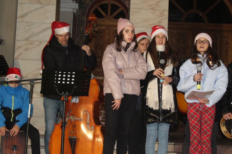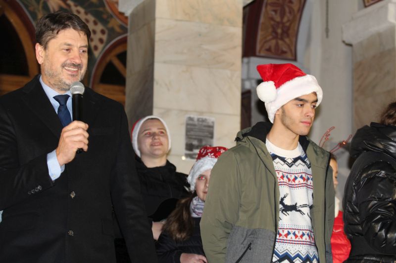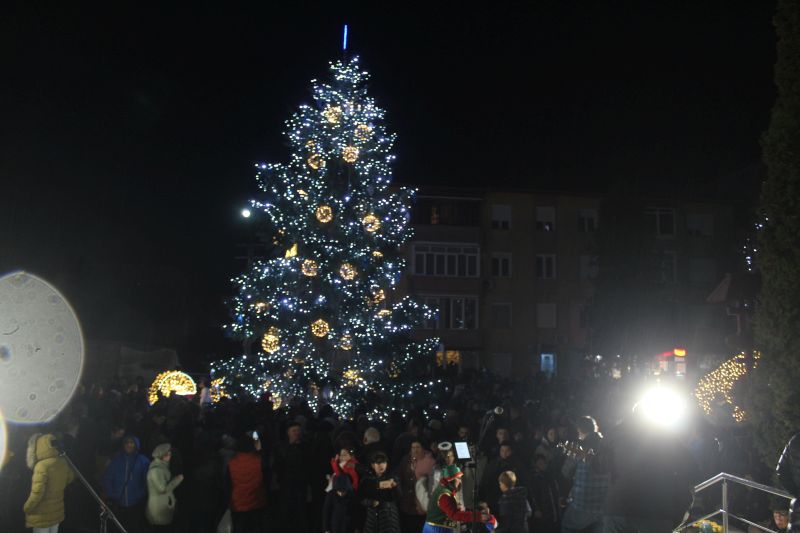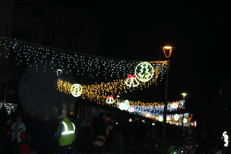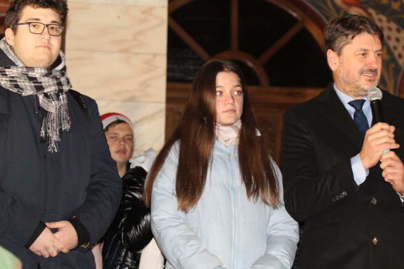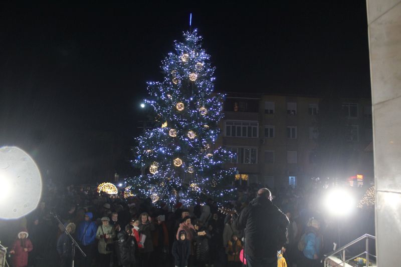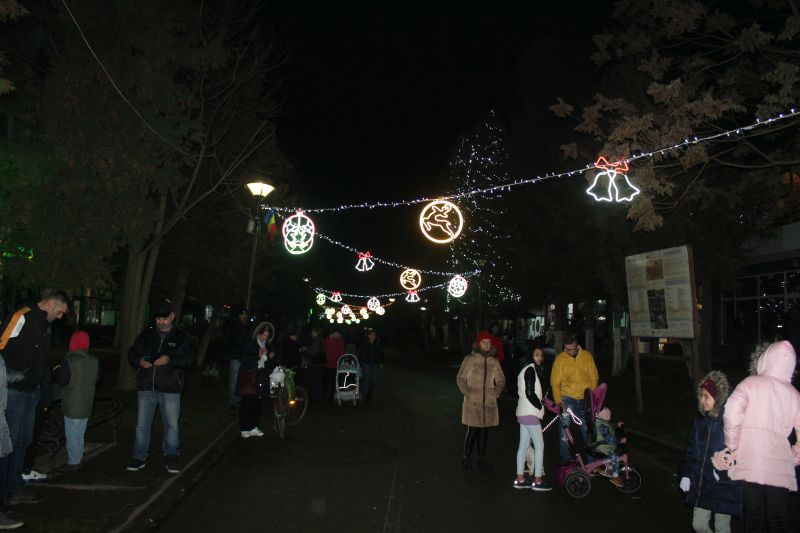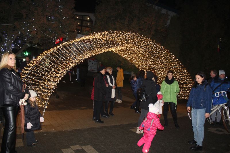 Luminile de sărbători au fost aprinse de primarul orașului, Adrian Teban alături de elevii care au obținut cele mai bune rezultate la învățătură în decursul anului, dar și la olimpiadele școlare (performerii orașului).