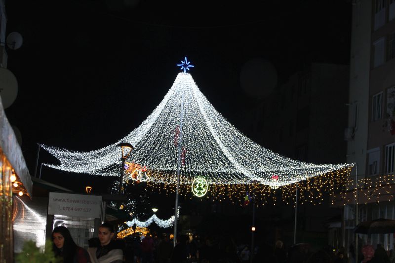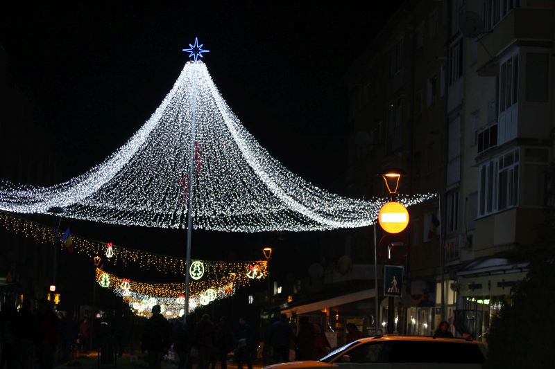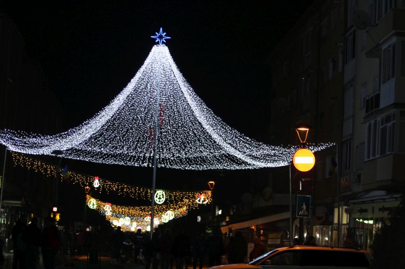O varietate de modele și culori, mii de ghirlande luminoase, două cupole luminoase, împodobesc de sărbători principalul bulevard din orașul Cugir.