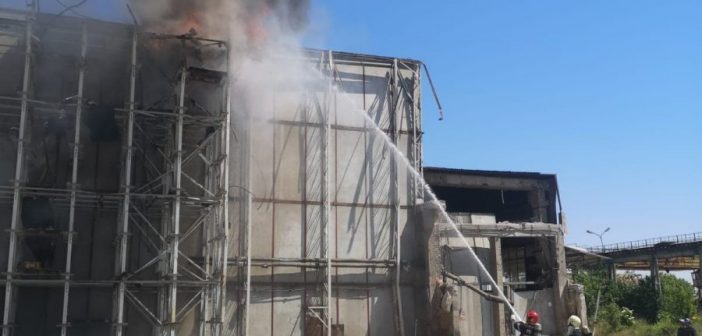 O hală dezafectată din municipiul Alba Iulia, a fost luni, cuprinsă de flăcări.
