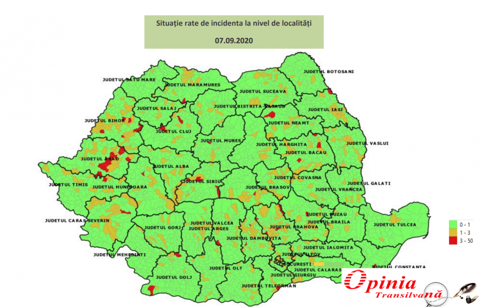 Ministerul Sănătății a făcut publică luni incidența cumulată a îmbolnăvirilor în ultimele 14 zile, în vederea începerii noului an școlar.