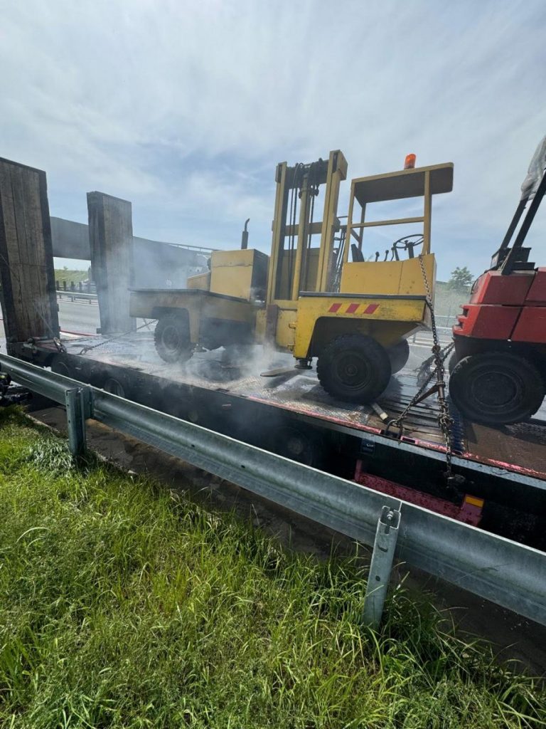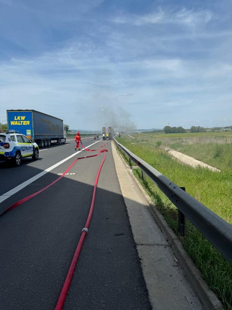 Secția de pompieri Sebeș intervine pentru localizarea și stingerea unui incendiu la un autocamion pe autostrada A10, sens de mers Sebes-Alba.