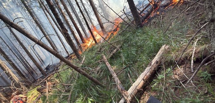 La fața locului sunt mobilizate o autospecială de stingere incendii de pădure și o autospecială de primă intervenție. De asemenea, intervin și SVSU Jina și Ocolul Silvic Săliște.