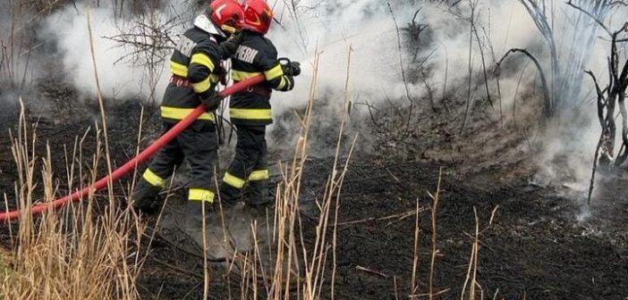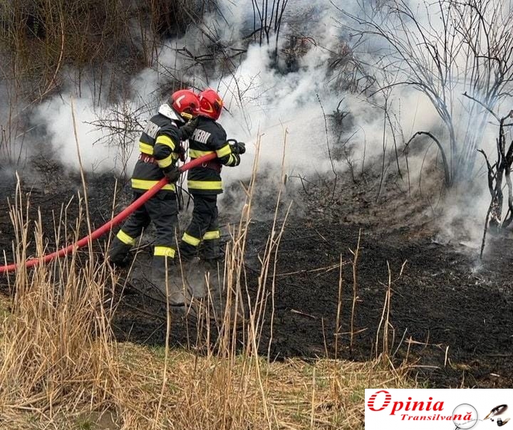 Sectia de pompieri Aiud intervine pentru stingerea unui incendiu vegetatie uscata in proximitatea magistralei 300, tren Interregio de calatori (31 de pasageri) in Lunca Mures pe linia (Cluj – Sibiu).