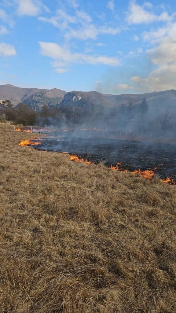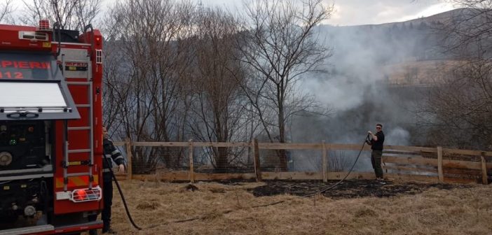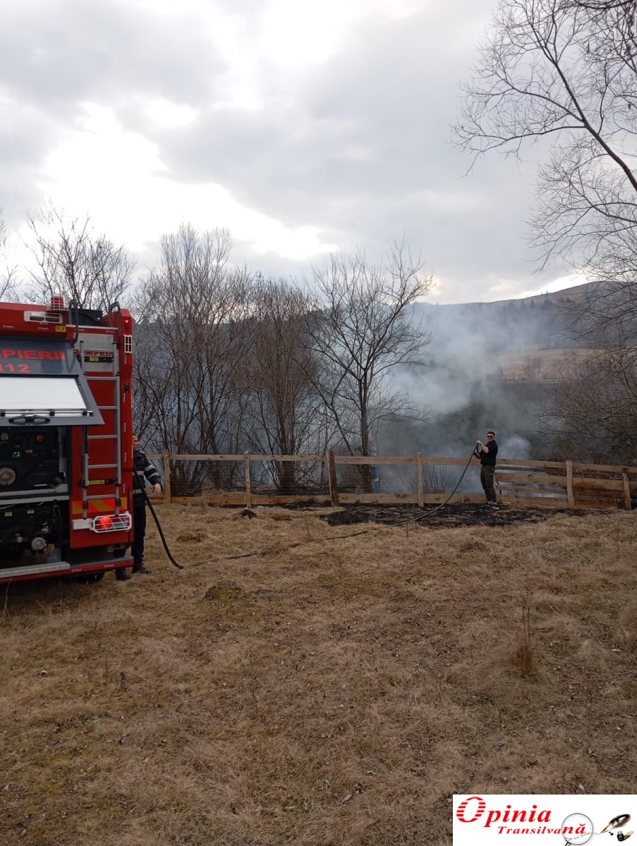 Secția de pompieri Câmpeni intervine pentru stingerea unui incendiu izbucnit la vegetație uscată în localitatea Lupșa.