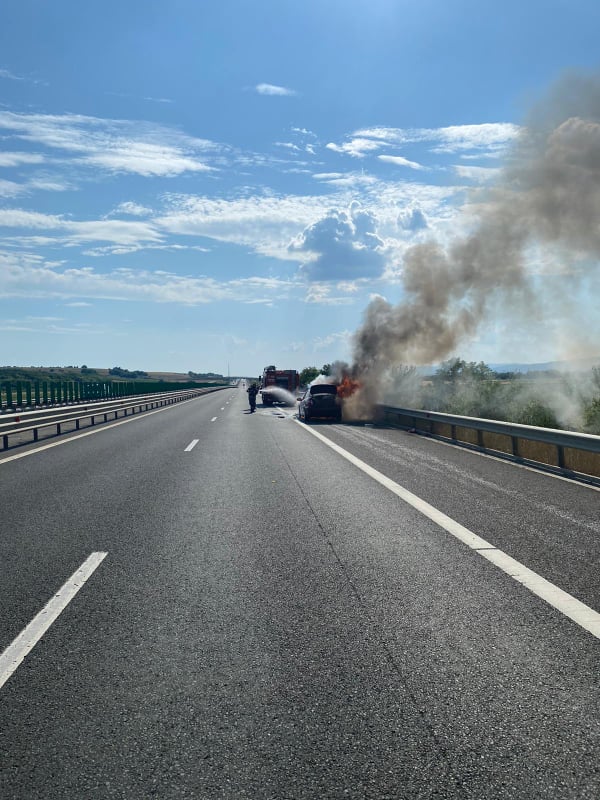 Un incendiu a izbucnit la compartimentul motor al unui autoturism, duminică, pe Autostrada A1, pe raza localității Balomiru de Câmp, sensul de circulație Sebeș – Deva.
